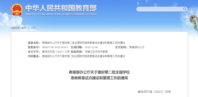 通知一并發(fā)布《第二批全國學校急救教育試點工作指南》,從總體要求、重點任務兩個方面部署推進試點工作。