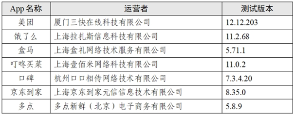 本次測試中國網(wǎng)絡空間安全協(xié)會選取了19家應用商店累計下載量達到1億次的“餐飲外賣類”App,共計7款。