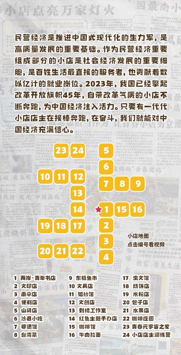 2023年是改革開放45周年,自5月起中國(guó)青年報(bào)發(fā)起"了不起的青春小店"尋訪調(diào)研,派出采編調(diào)研組奔赴全國(guó)各地探訪了60多個(gè)地方的青春小店,與上百家小店的創(chuàng)業(yè)青年深度對(duì)話,了解他們的急難愁盼,呼吁社會(huì)更多地關(guān)注這一群體。