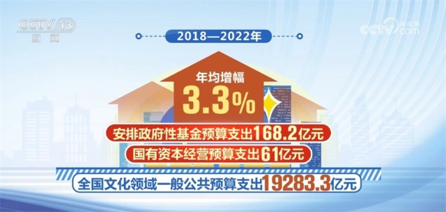 2018—2022年,全國(guó)文化領(lǐng)域一般公共預(yù)算支出19283.3億元,年均增幅3.3%;安排政府性基金預(yù)算支出168.2億元,國(guó)有資本經(jīng)營(yíng)預(yù)算支出61億元。
