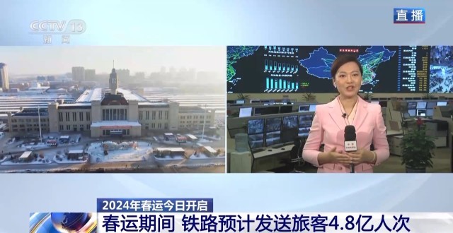 總臺(tái)央視記者 陳晰:40天春運(yùn),全國(guó)鐵路預(yù)計(jì)發(fā)送旅客4.8億人次,日均1200萬(wàn)人次。今天是春運(yùn)首日,全國(guó)鐵路預(yù)計(jì)發(fā)送旅客1060萬(wàn)人次。2024年春運(yùn)的火車(chē)票預(yù)售已經(jīng)從1月12日開(kāi)始發(fā)售,從目前的售票情況來(lái)看,旅客出行需求旺盛。