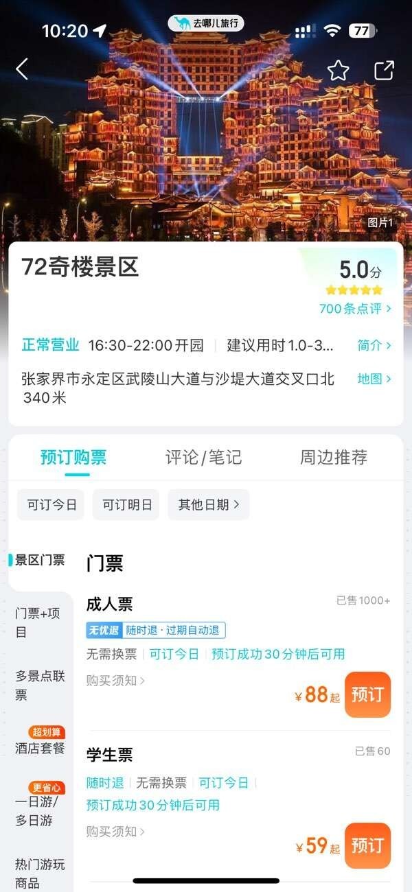 截至記者發(fā)稿時(shí),“七十二奇樓”景區(qū)的門票在多個(gè)平臺(tái)仍處于可售狀態(tài)。
