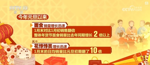 面食這樣的傳統(tǒng)食品,春節(jié)期間線上、線下銷售非?;鸨?/p>