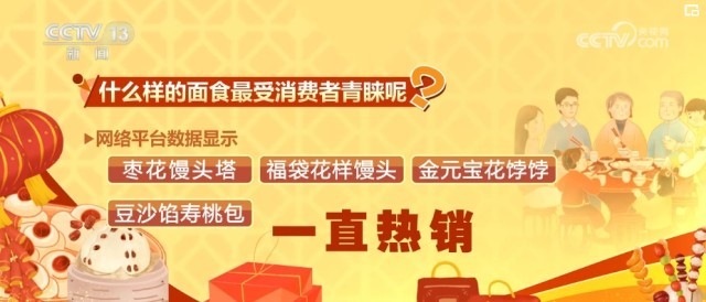 什么樣的面食最受消費者青睞?網(wǎng)絡(luò)平臺數(shù)據(jù)顯示,寓意著“步步登高”的棗花饅頭塔、福袋花樣饅頭、金元寶花餑餑還有豆沙餡壽桃包一直熱銷。