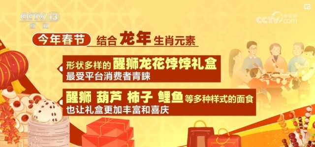 不僅如此,2024年春節(jié),結(jié)合龍年生肖元素,形狀多樣的醒獅龍花餑餑禮盒最受平臺消費者青睞,而醒獅、葫蘆、柿子、鯉魚等多種樣式的面食,也讓禮盒更加豐富和喜慶。