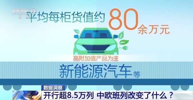 全程時(shí)刻表中歐班列速度最快,貨值最高。它的貨品以新能源汽車等高附加值產(chǎn)品為主。平均每柜貨值約80余萬元,比普通班列高出13%。去年中歐班列承載的貿(mào)易額超過750億美元,比前三年的平均值增長了50%。