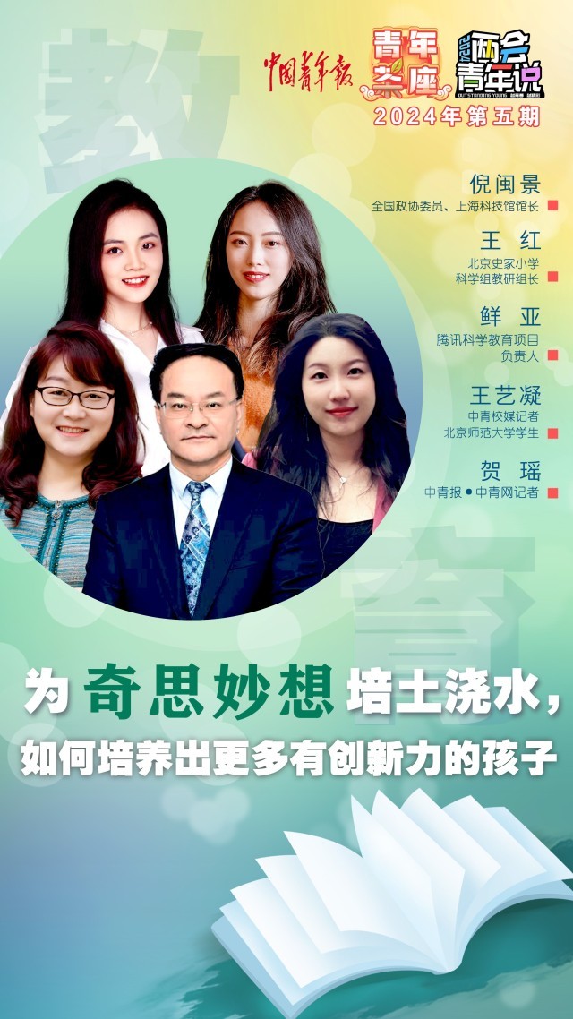 2024年全國兩會正在召開,今年政府工作報告提到“要廣泛開展科學(xué)普及,培育創(chuàng)新文化,弘揚(yáng)科學(xué)家精神?!睘槭裁从行┤诵r候會有很多天馬行空的想法,長大了反而提不出問題了?對此,全國政協(xié)委員、上海科技館館長倪閩景分析說:“保持孩子們的興趣和提問題的能力是科學(xué)教育的核心,全社會科學(xué)氛圍越濃,越能激發(fā)創(chuàng)新人才的涌現(xiàn)。”怎樣呵護(hù)孩子們的奇思妙想?戳視頻,看中國青年報《青年茶座·兩會青年說》節(jié)目第5期,聊聊怎樣給科學(xué)教育做“加法”。