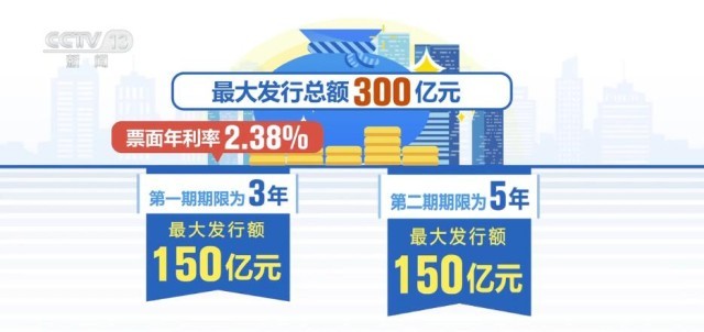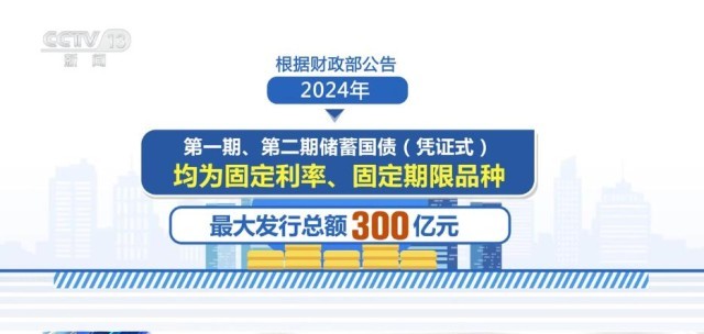 根據(jù)財(cái)政部公告,2024年第一期、第二期儲(chǔ)蓄國(guó)債(憑證式)均為固定利率、固定期限品種,最大發(fā)行總額300億元。其中,第一期期限為3年,最大發(fā)行額150億元,票面年利率2.38%;第二期期限為5年,最大發(fā)行額150億元,票面年利率2.5%。