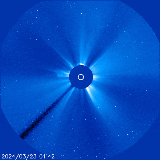再加之此次日冕物質(zhì)拋射過程發(fā)生的位置幾乎正對(duì)地球。從地球看去,噴發(fā)物形成一個(gè)圓面,也就是“全暈”。此類爆發(fā)活動(dòng)噴出的太陽(yáng)物質(zhì)相對(duì)地球速度快、覆蓋度高,可能會(huì)引起比較強(qiáng)的地磁活動(dòng)。