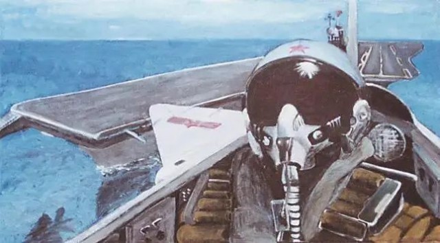 一名飛行員駕駛艦載機(jī)從航母上起飛