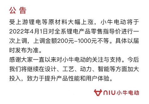 小牛電動全系鋰電產(chǎn)品將漲價 上調(diào)200-1000元不等