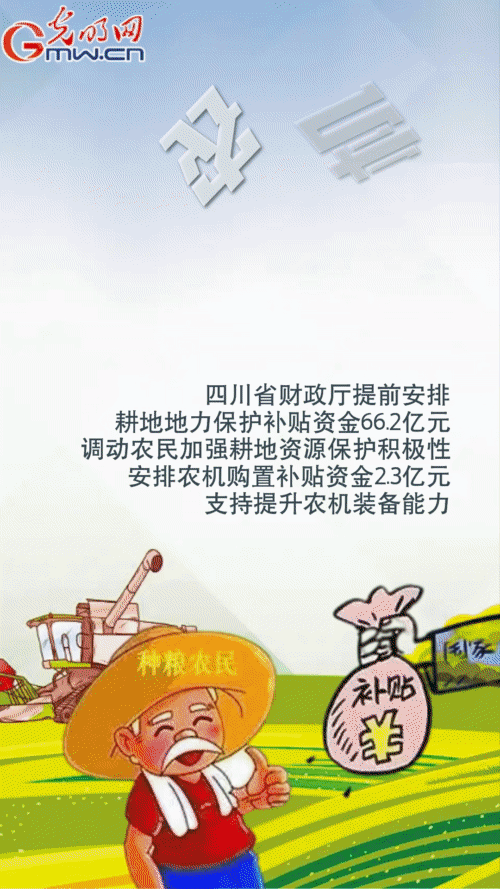 海南省財政廳安排糧食生產(chǎn)相關(guān)項目資金12.61億元,統(tǒng)籌土地出讓收入3.23億元用于高標準農(nóng)田建設(shè);四川省財政廳提前安排耕地地力保護補貼資金66.2億元,調(diào)動農(nóng)民加強耕地資源保護積極性,安排農(nóng)機購置補貼資金2.3億元,支持提升農(nóng)機裝備能力。