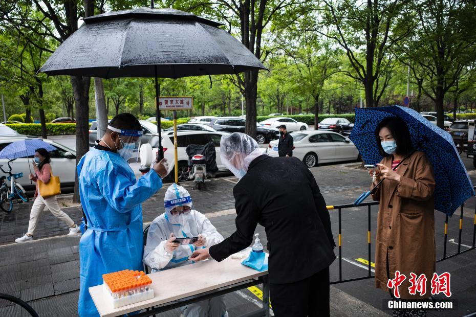北京朝陽區(qū)市民冒雨參加第二次常態(tài)化核酸檢測