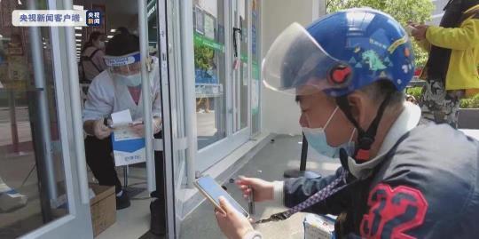 記者在位于黃浦區(qū)人民路上的某藥房看到,前來取藥的外賣小哥絡(luò)繹不絕。每位小哥都要掃描場所碼,加入藥房群,發(fā)送電子通行證的截圖和單號才能取貨。