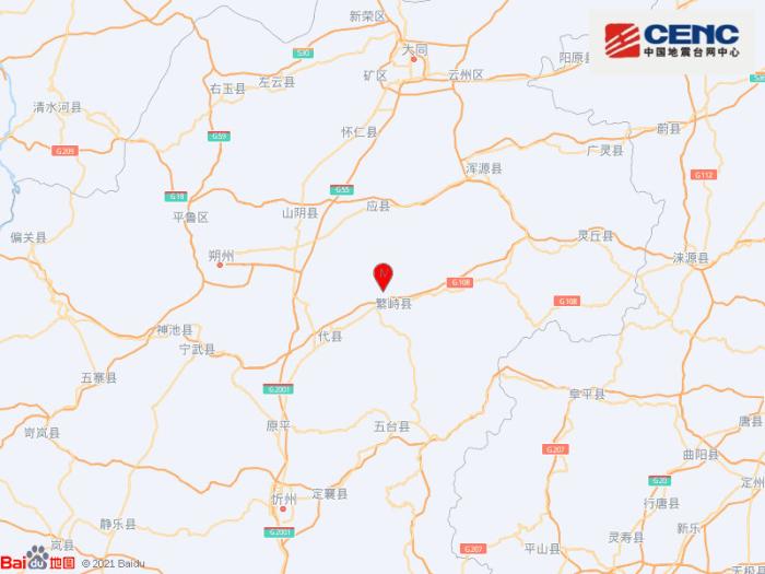 山西忻州市繁峙縣發(fā)生3.2級地震 震源深度10千米