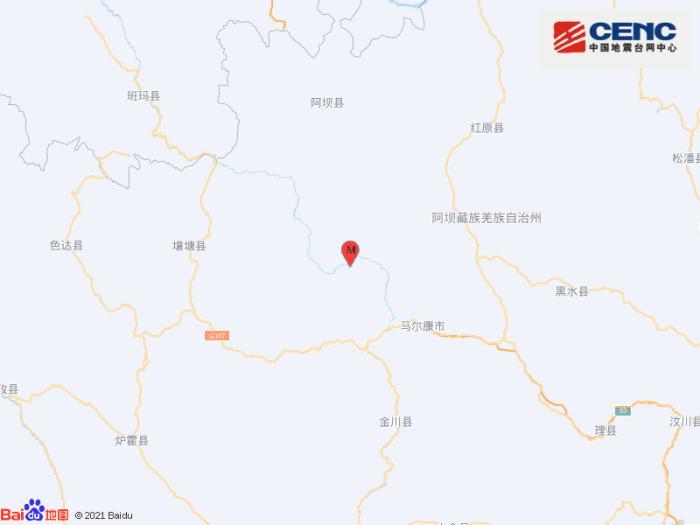 四川阿壩州馬爾康市發(fā)生3.3級地震 震源深度12千米