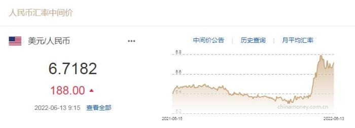 人民幣對(duì)美元中間價(jià)下調(diào)188個(gè)基點(diǎn) 1美元對(duì)人民幣6.7182元
