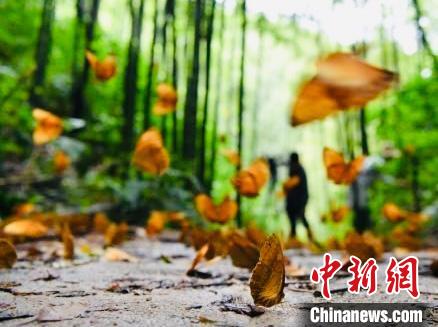 圖為金平縣的中國·紅河蝴蝶谷內(nèi)箭環(huán)蝶幼蟲在短時(shí)間大量集中羽化成蝶。 劉冉陽 攝