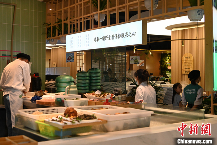 圖為7月11日,云南昆明,一家野生菌火鍋店內的工作人員在開放式廚房內處理野生菌。 中新社記者 李嘉嫻 攝