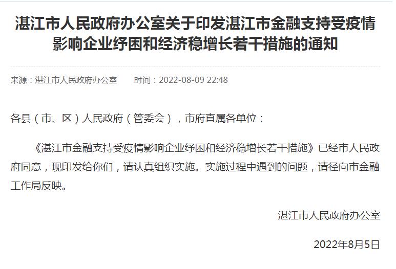 中新網8月10日電 廣東省湛江市人民政府網站9日發(fā)布《關于印發(fā)湛江市金融支持受疫情影響企業(yè)紓困和經濟穩(wěn)增長若干措施的通知》,提及促進房地產市場平穩(wěn)健康發(fā)展金融服務等方面的措施。