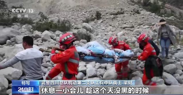 武警四川總隊機(jī)動第二支隊工兵中隊?wèi)?zhàn)士 梁財:運(yùn)送的傷員中有腰受傷的、腿骨折的,我們休息的時候也只能找個平坦的地方,休息一小會兒,趁天沒黑的時候,看得清路,抓緊時間往山上運(yùn),特別是運(yùn)送至山上的時候,坡度比較大,滾石也比較多,很危險。但是戰(zhàn)友們沒有一個人喊苦喊累,都在堅持。