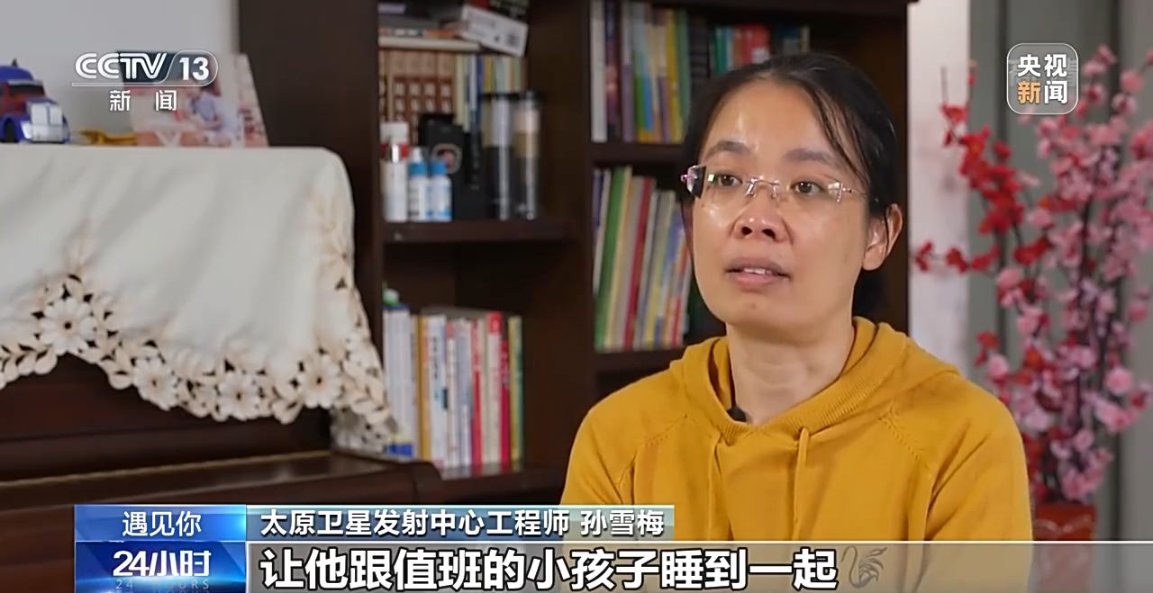太原衛(wèi)星發(fā)射中心工程師 孫雪梅:尤其是忙起來的時候,真想找個人替我一把,但是又沒有,然后就覺得要是他在,就能幫你一下,咬牙克服,很難。比如說,孩子很小的時候,他不在,我晚上還要去加班,我就抱著他,我們樓里面有個值班室,讓他跟值班的小孩子睡到一起,我凌晨加班結束了,再把他抱回來。