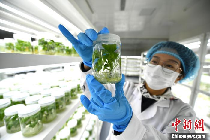 在河北中薯農(nóng)業(yè)科技集團(tuán)股份有限公司甘薯脫毒組培中心,技術(shù)員查看脫毒苗生長(zhǎng)情況?!∴嵆孔?攝
