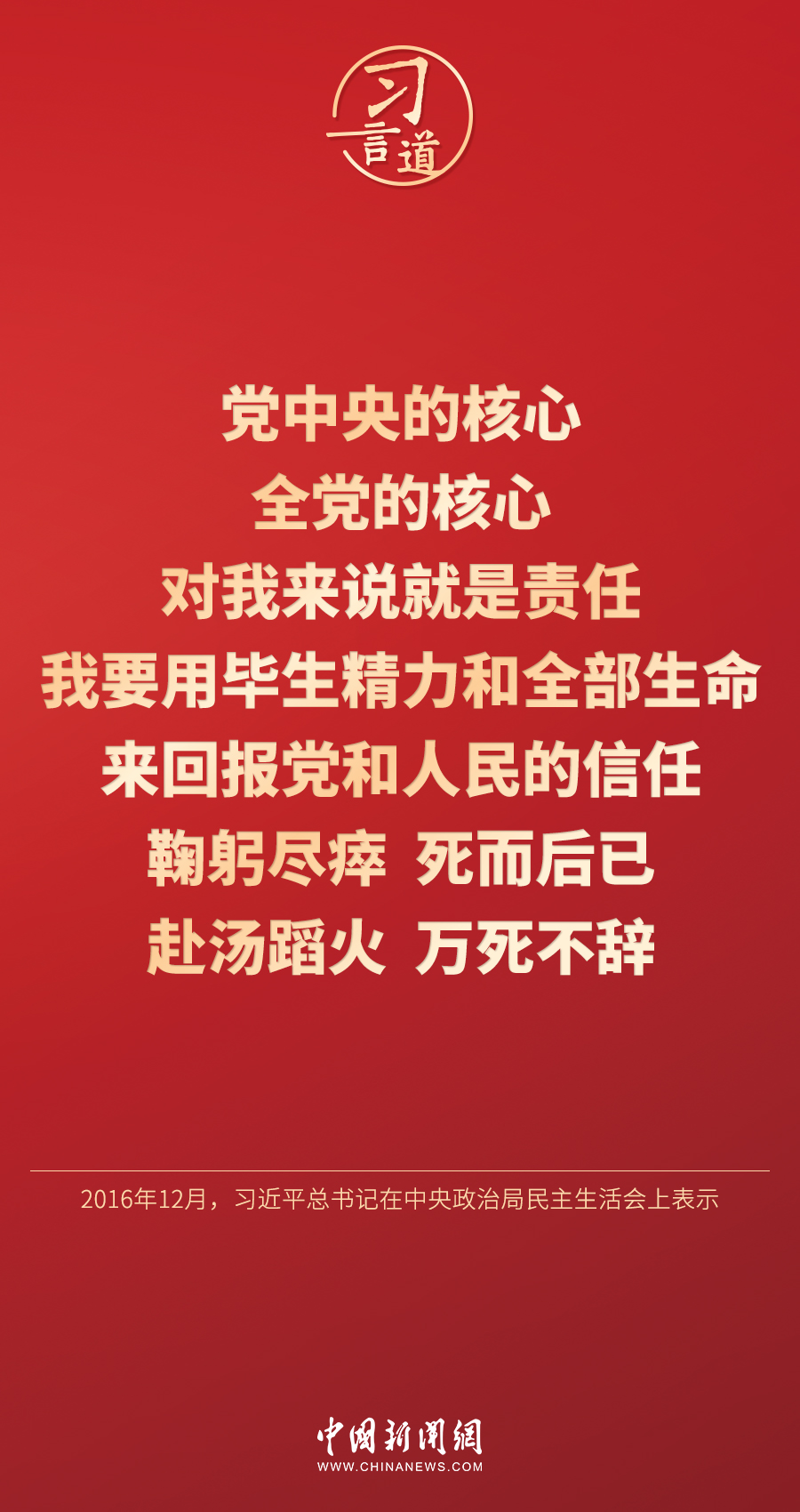 習言道|“黨中央的核心、全黨的核心,對我來說就是責任”