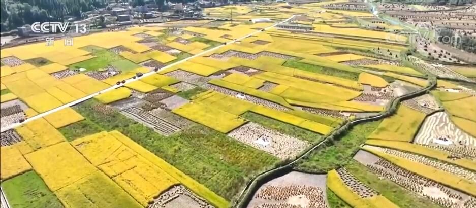央視網(wǎng)消息:這幾天,云南曲靖富源縣的水稻迎來(lái)豐收,村民們忙著收割,這些曾經(jīng)閑置的土地如今仿佛鋪上了“金黃地毯”。