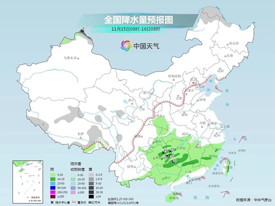 明天將是降雨最強的一天,新疆北部、西藏北部和東部、青海南部等地部分地區(qū)有小到中雪,其中,新疆北疆北部和伊犁河谷局地有大雪。江淮西部、江南中東部和西南部、華南西部等地部分地區(qū)有中到大雨,其中,廣西東北部等地局地有暴雨。