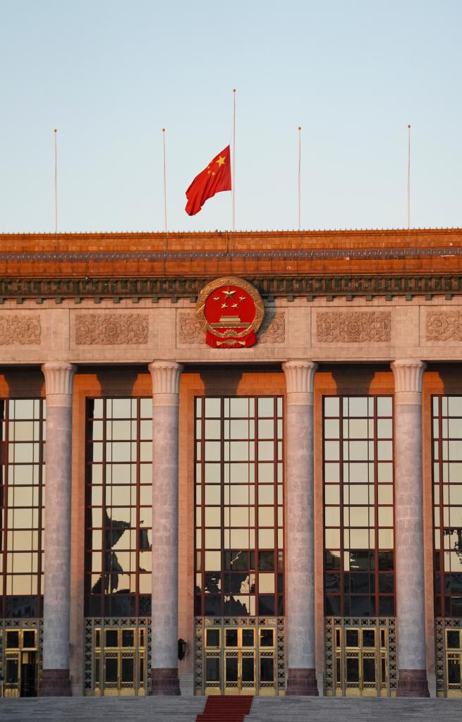 12月1日,北京人民大會堂下半旗志哀,悼念江澤民同志逝世。新華社記者 陳鐘昊 攝