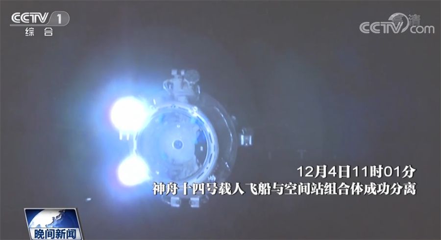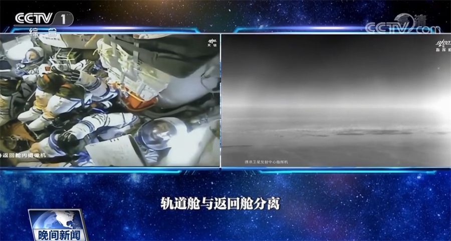 19時(shí)20分,北京航天飛行控制中心通過地面測控站發(fā)出返回指令,神舟十四號載人飛船軌道艙與返回艙成功分離。此后,飛船返回制動(dòng)發(fā)動(dòng)機(jī)點(diǎn)火,返回艙與推進(jìn)艙分離。