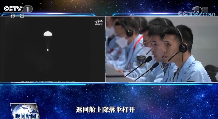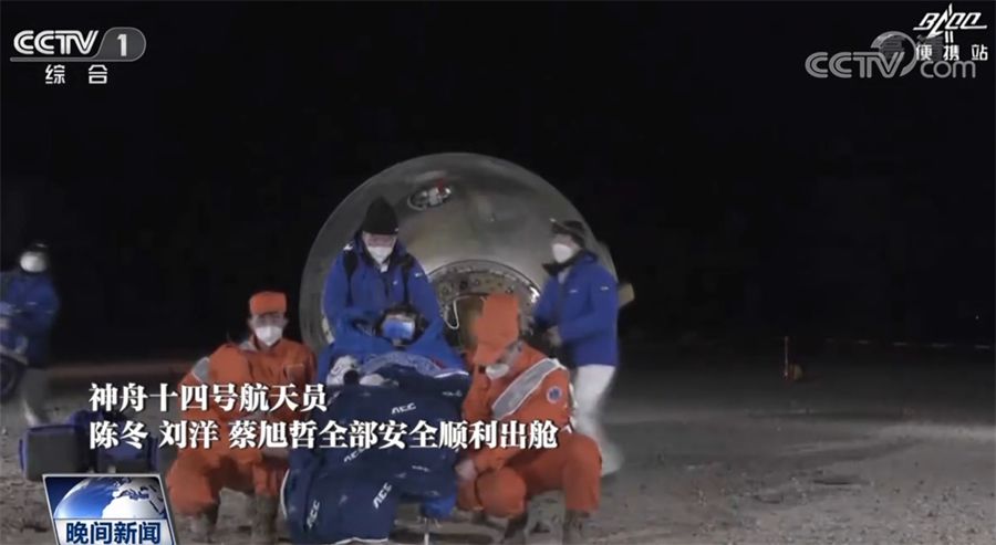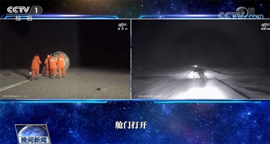 返回艙成功著陸后,擔(dān)負(fù)搜救回收任務(wù)的搜救分隊(duì)及時(shí)發(fā)現(xiàn)目標(biāo)并抵達(dá)著陸現(xiàn)場。返回艙艙門打開后,醫(yī)監(jiān)醫(yī)保人員確認(rèn)航天員身體健康。