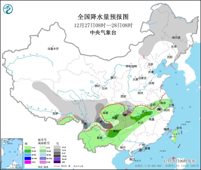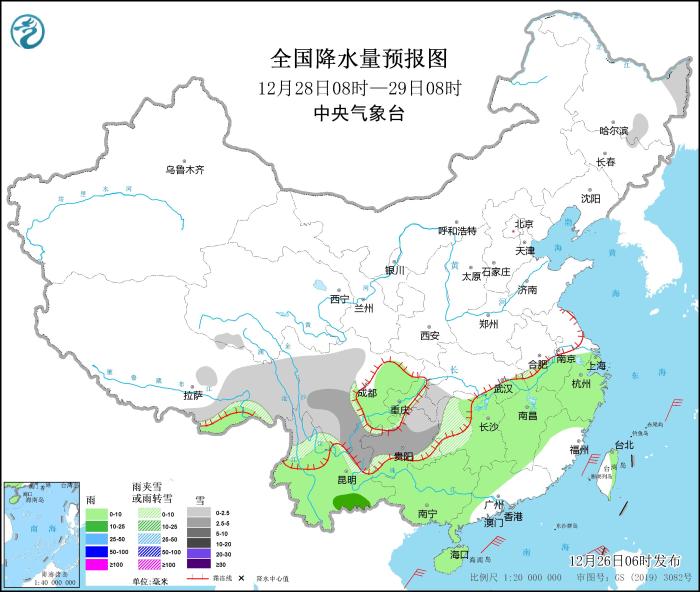 圖2 全國降水量預報圖(12月27日08時-28日08時)