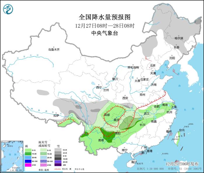 全國降水量預(yù)報圖(12月27日08時-28日08時)