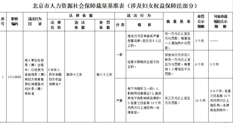 中新網(wǎng)2月3日電 北京市人力資源和社會保障局近日發(fā)布關(guān)于印發(fā)《北京市人力資源社會保障行政處罰裁量基準(zhǔn)表(涉及婦女權(quán)益保障法部分)》的通知,其中明確,用人單位在招錄(聘)過程中,以性別為由拒絕錄(聘)用婦女或者差別化地提高對婦女錄(聘)用標(biāo)準(zhǔn),或因結(jié)婚、懷孕、產(chǎn)假、哺乳等,降低女職工的工資和福利待遇等行為,最高可處五萬元罰款。(中新財經(jīng))
