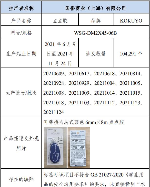 KOKUYO國譽(yù)文具召回10萬余個點(diǎn)點(diǎn)膠