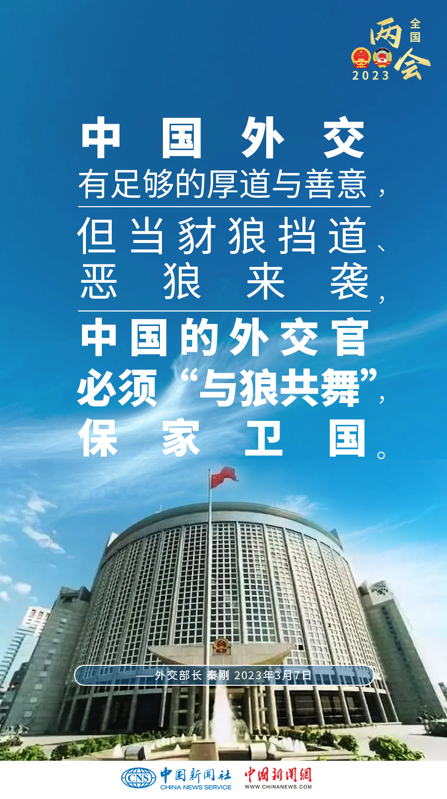 秦剛:兩千多年前,孔夫子就說過,“以德報(bào)德,以直報(bào)怨。以德報(bào)怨,何以報(bào)德?”中國外交有足夠的厚道與善意,但當(dāng)豺狼擋道、惡狼來襲,中國的外交官必須“與狼共舞”,保家衛(wèi)國。