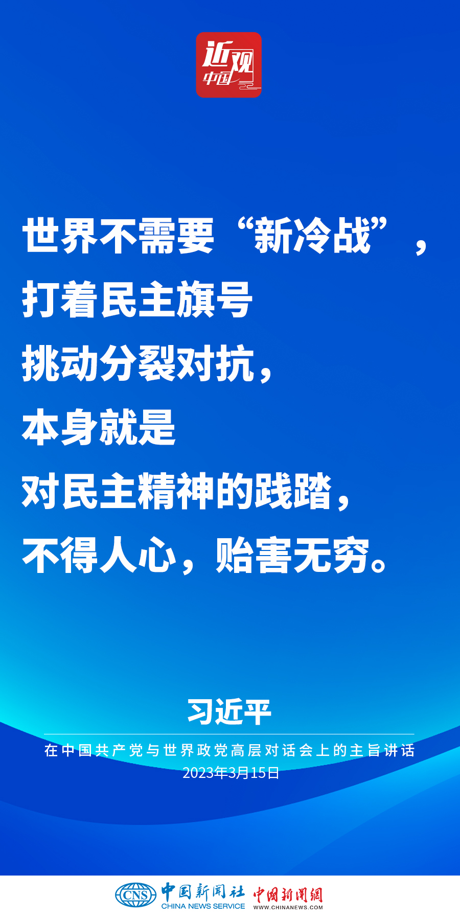 3月15日,中共中央總書記、國家主席習近平在北京出席中國共產(chǎn)黨與世界政黨高層對話會并發(fā)表主旨講話。他強調(diào)——