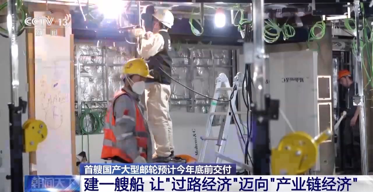 中國船舶外高橋造船郵輪辦公室主任 大型郵輪工程項目副經(jīng)理 易國偉:電纜要提供控制信號,這條船它也是智能化的一條船舶,所有上面用的娛樂設(shè)施、照明設(shè)施,都可以通過中央控制系統(tǒng)來控制。