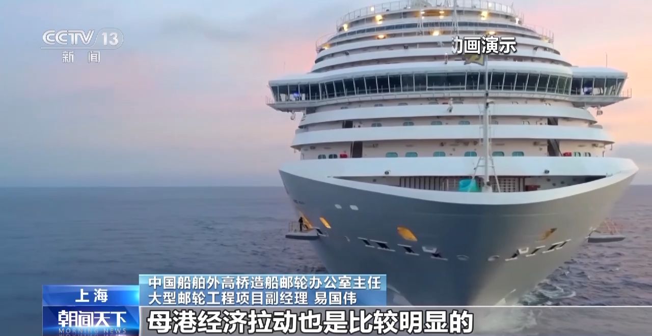 中國船舶外高橋造船郵輪辦公室主任 大型郵輪工程項目副經(jīng)理 易國偉:顧客在登船和下船以后,在當?shù)匾矔M行對應(yīng)的消費和娛樂,所以對當?shù)馗劭诘哪父劢?jīng)濟拉動也是比較明顯的。中國的郵輪產(chǎn)業(yè)如果按照正常的發(fā)展速度,預估在2035年可以達到一年5000億元的產(chǎn)值。