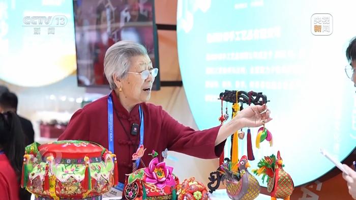 在江蘇展區(qū),一位正在做針線活的白發(fā)老人引人注目,她是江蘇省級非遺項目傳承人王秀英。王奶奶做的徐州香包名字叫做針棒,有著豐厚的文化蘊涵和文化價值,入選第一批國家級非物質文化遺產擴展項目名錄。這次和王奶奶一同來參展的還有她的孫女孫歌堯。在學習傳統工藝的同時,孫歌堯大膽創(chuàng)新,嘗試融入更多技法和材質。