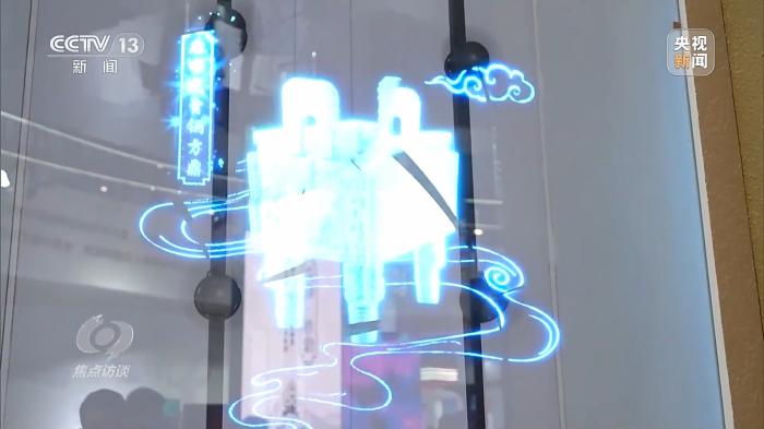 在AI繪畫一旁,國家級保護文物司母戊大方鼎、青銅縱目面具、四羊方尊、越王勾踐劍、曾侯乙編鐘等正以數字化形式呈現在觀眾面前。參展商通過數字孿生技術復現或重構文物和文化遺產的數字鏡像,從而實現文物和文化遺產的保護、修復直至永久性保存和活態(tài)化傳承。觀眾既可以看到部分真實的復制文物和文化遺產,又可以體驗虛擬的數字文物和文化遺產,虛實之間,體會數字化給傳統文物和文化遺產帶來的生命力。