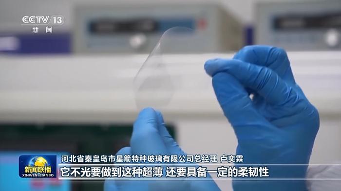 河北省秦皇島市星箭特種玻璃有限公司總經理盧奕霖:它不光要做到這種超薄,還要具備一定的柔韌性,同時要在1000攝氏度的高溫下長時間使用。