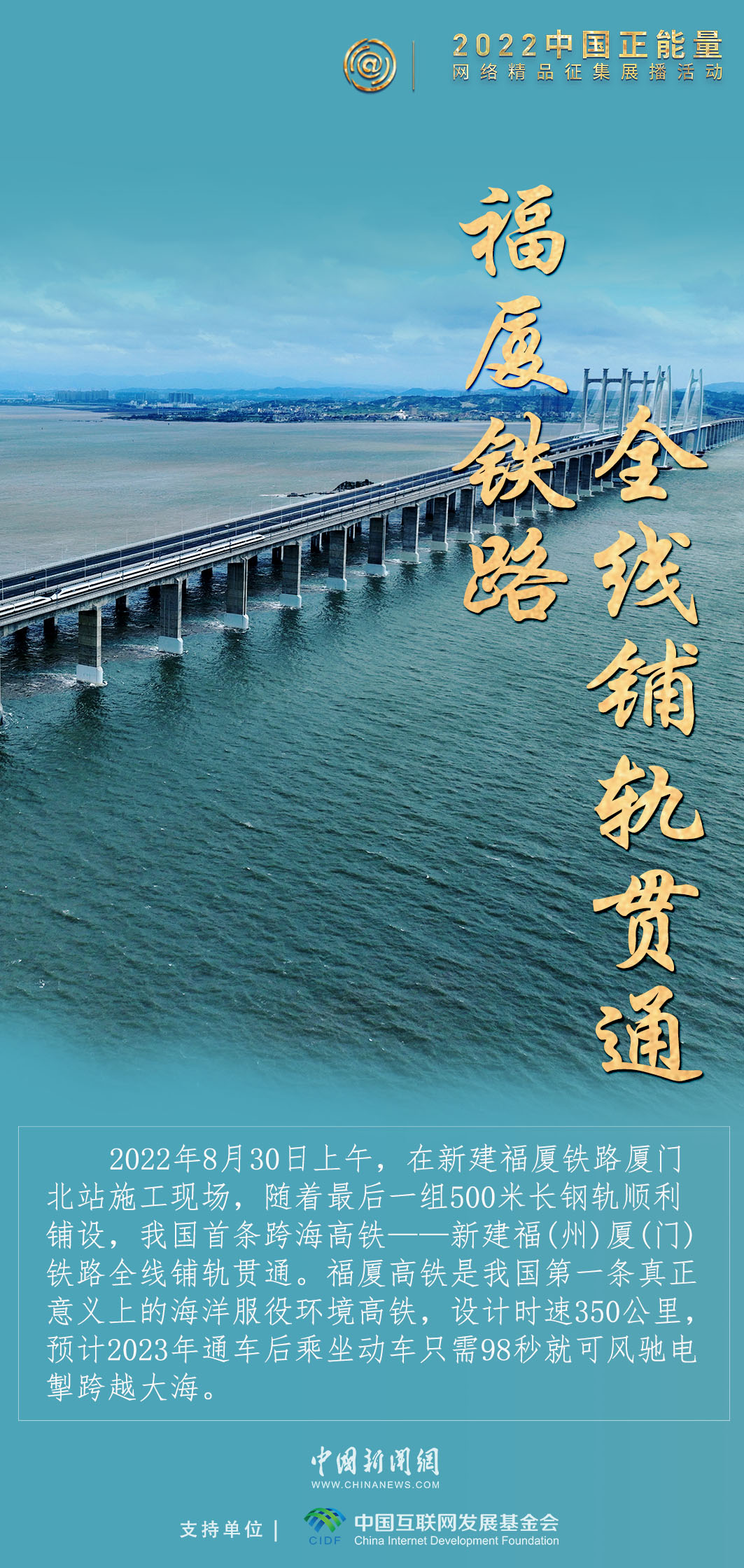 2022年是我國(guó)交通建設(shè)碩果累累的一年,我國(guó)首條跨海高鐵——新建福(州)廈(門(mén))鐵路全線鋪軌貫通,新疆和若鐵路通車(chē)運(yùn)營(yíng),世界首條環(huán)沙漠鐵路線正式完成“最后一塊拼圖”,穿山越嶺、橫越大海,中國(guó)交通一路向前。