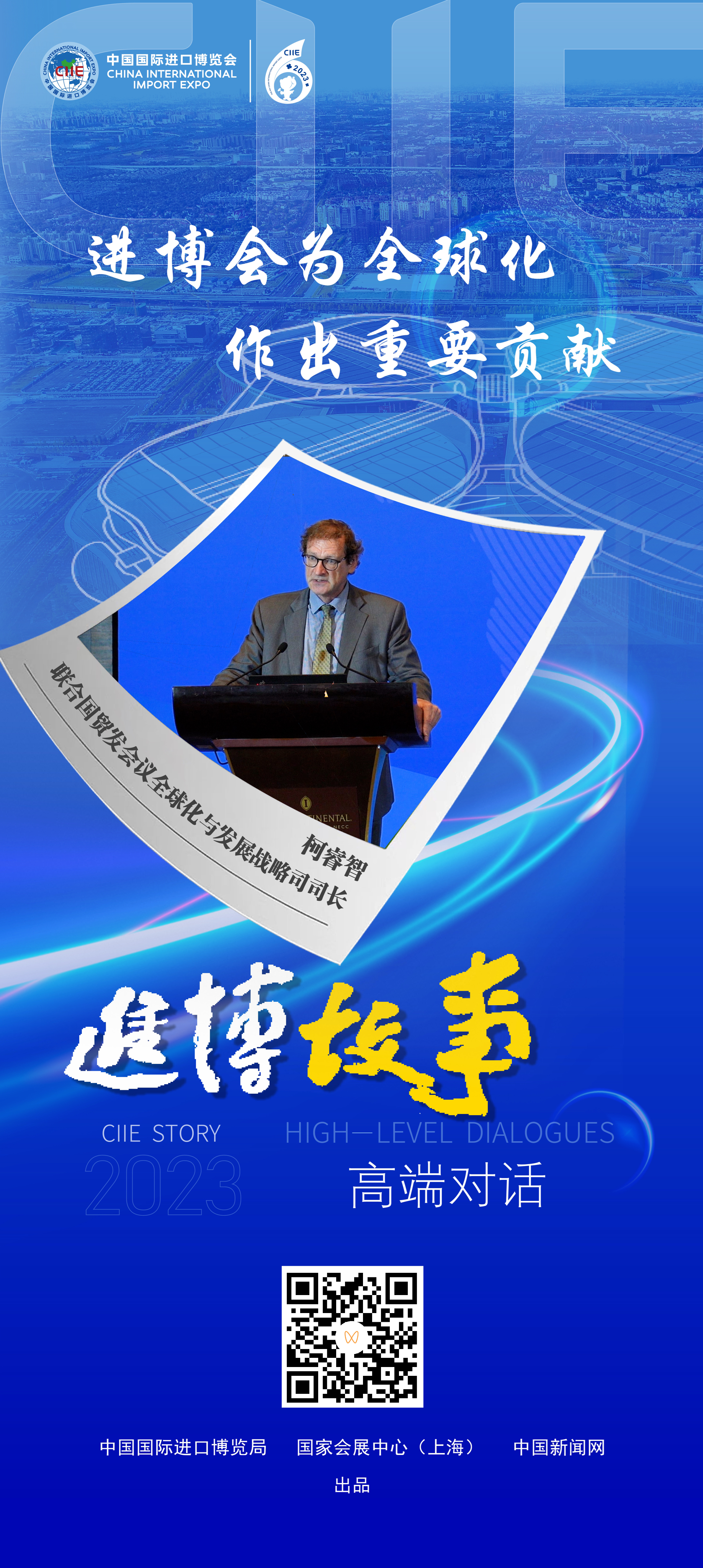?。ㄟM(jìn)博故事·高端對(duì)話)專訪聯(lián)合國貿(mào)發(fā)會(huì)議全球化與發(fā)展戰(zhàn)略司司長柯睿智:進(jìn)博會(huì)為全球化作出重要貢獻(xiàn)主題海報(bào)