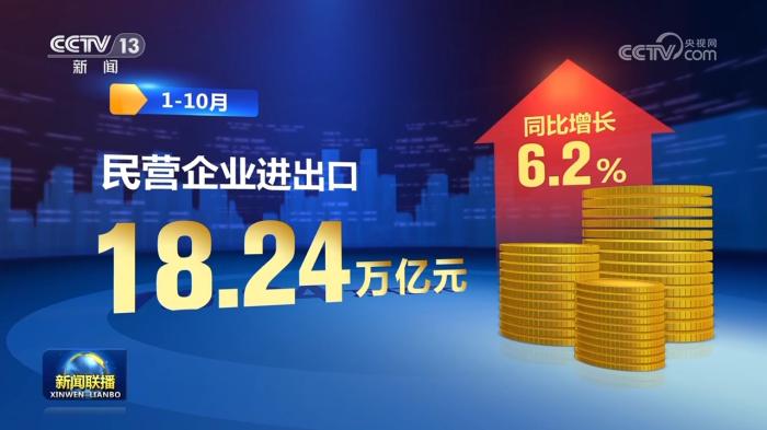 新動能帶動作用持續(xù)釋放,推動外貿(mào)領域積極因素累積增多。前三季度跨境電商進出口額達1.7萬億元,同比增長14.4%,保持較快增長。貿(mào)易結構優(yōu)化升級,1—10月,我國一般貿(mào)易進出口增長1.8%,占我國外貿(mào)總值的64.9%,比去年同期提升1.1個百分點。民營企業(yè)進出口18.24萬億元,同比增長6.2%,成為穩(wěn)外貿(mào)主力軍。