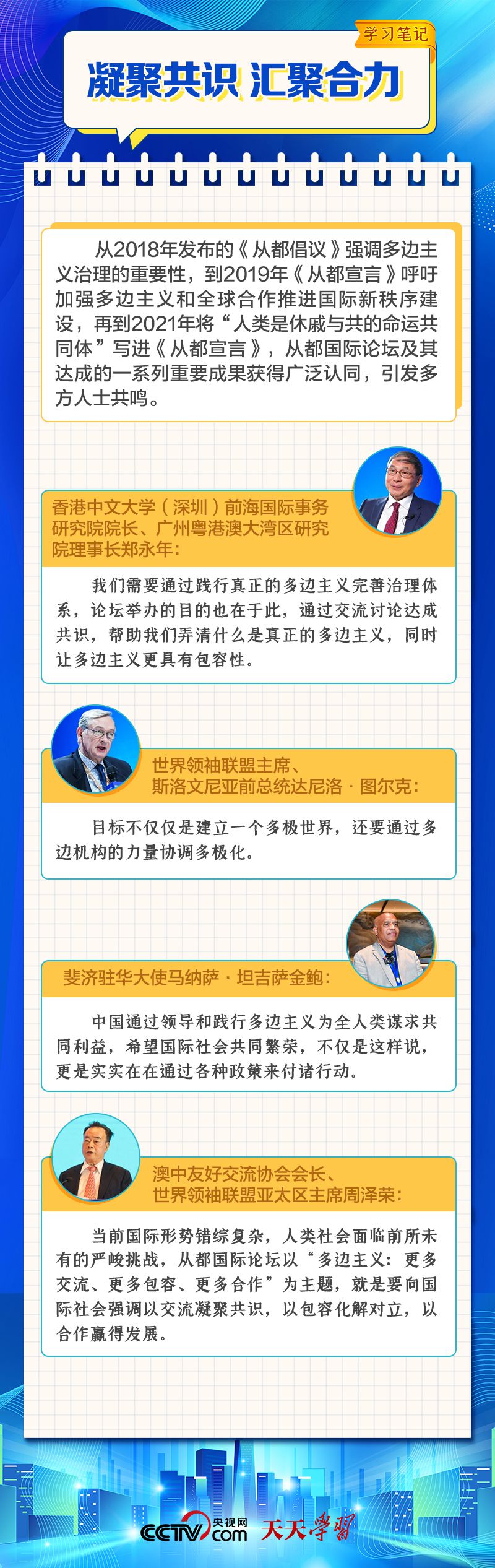 天天學習 12月4日,習近平主席在致“2023從都國際論壇”的賀信中強調(diào),面對前所未有的世界之變、時代之變和歷史之變,人類社會必須團結(jié)起來,堅持互學互鑒、開放包容、合作共贏,弘揚全人類共同價值,共同建設(shè)更加美好的世界。