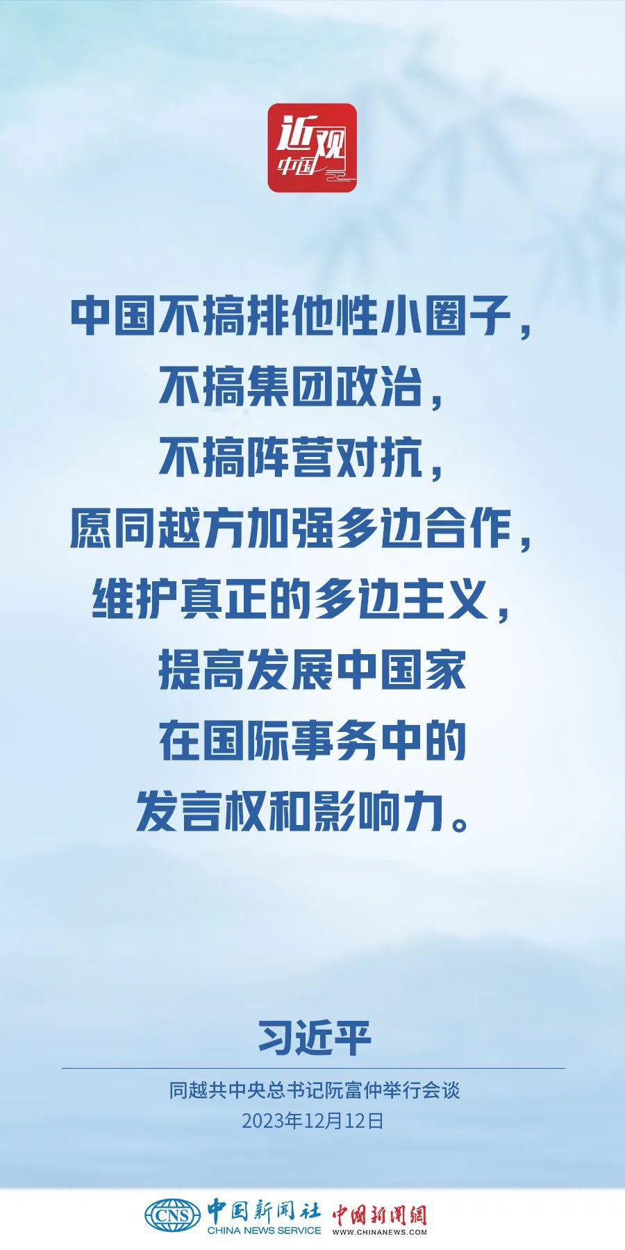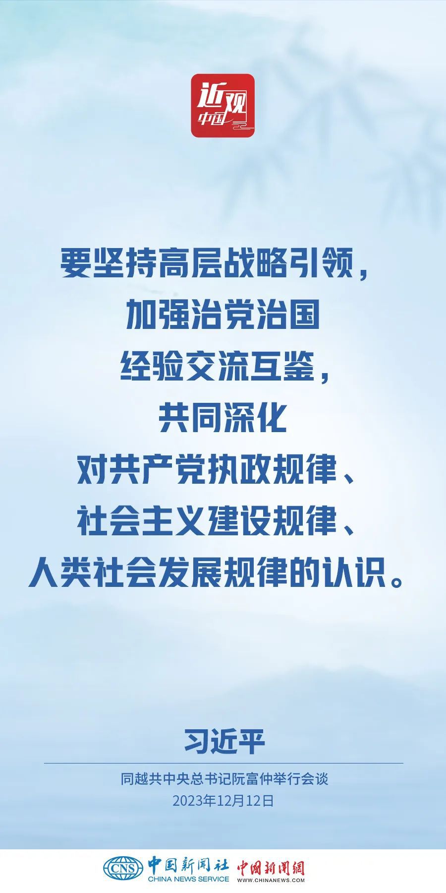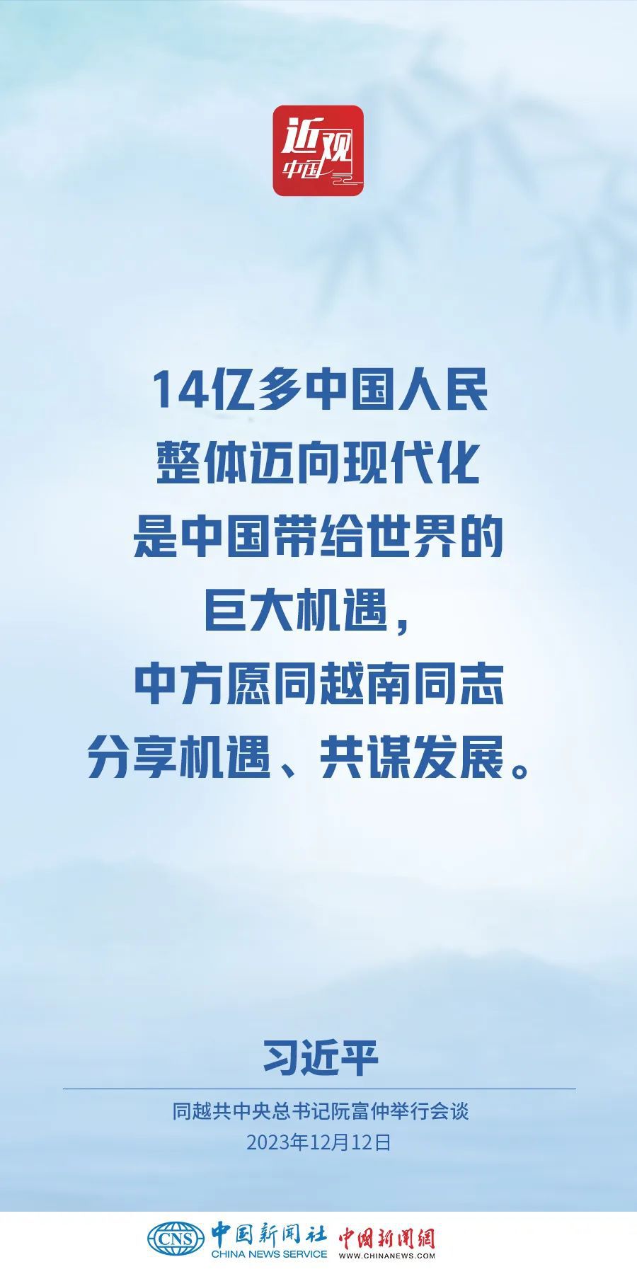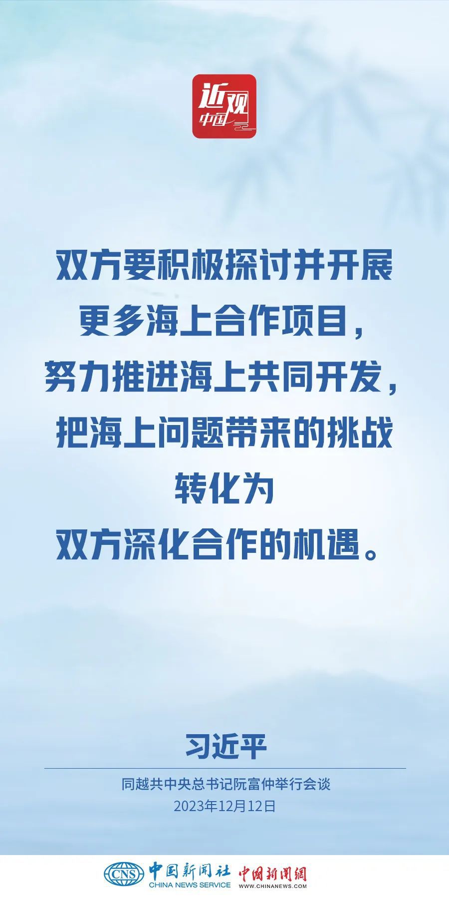 當(dāng)?shù)貢r(shí)間12月12日下午,剛剛抵達(dá)河內(nèi)的中共中央總書(shū)記、國(guó)家主席習(xí)近平在越共中央駐地同越共中央總書(shū)記阮富仲舉行會(huì)談。雙方宣布中越兩黨兩國(guó)關(guān)系新定位,在深化中越全面戰(zhàn)略合作伙伴關(guān)系基礎(chǔ)上,攜手構(gòu)建具有戰(zhàn)略意義的中越命運(yùn)共同體。習(xí)近平指出——