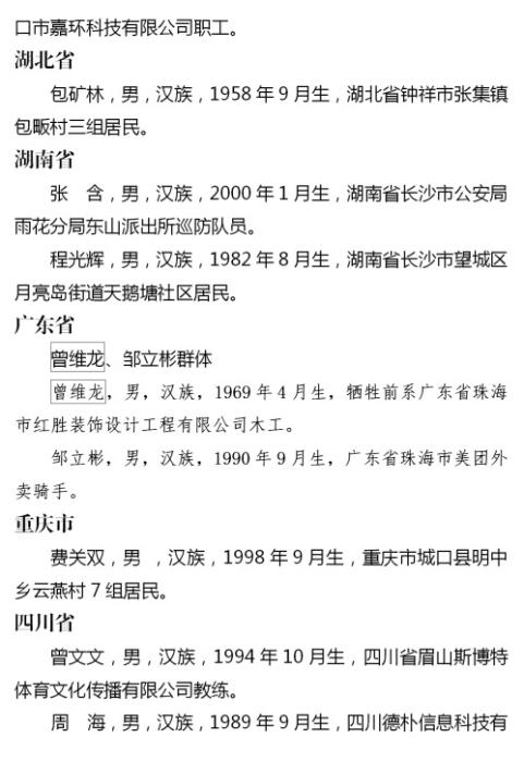 2023年第四季度見義勇為勇士榜名單 來源:中央政法委長安劍微信公眾號(hào)